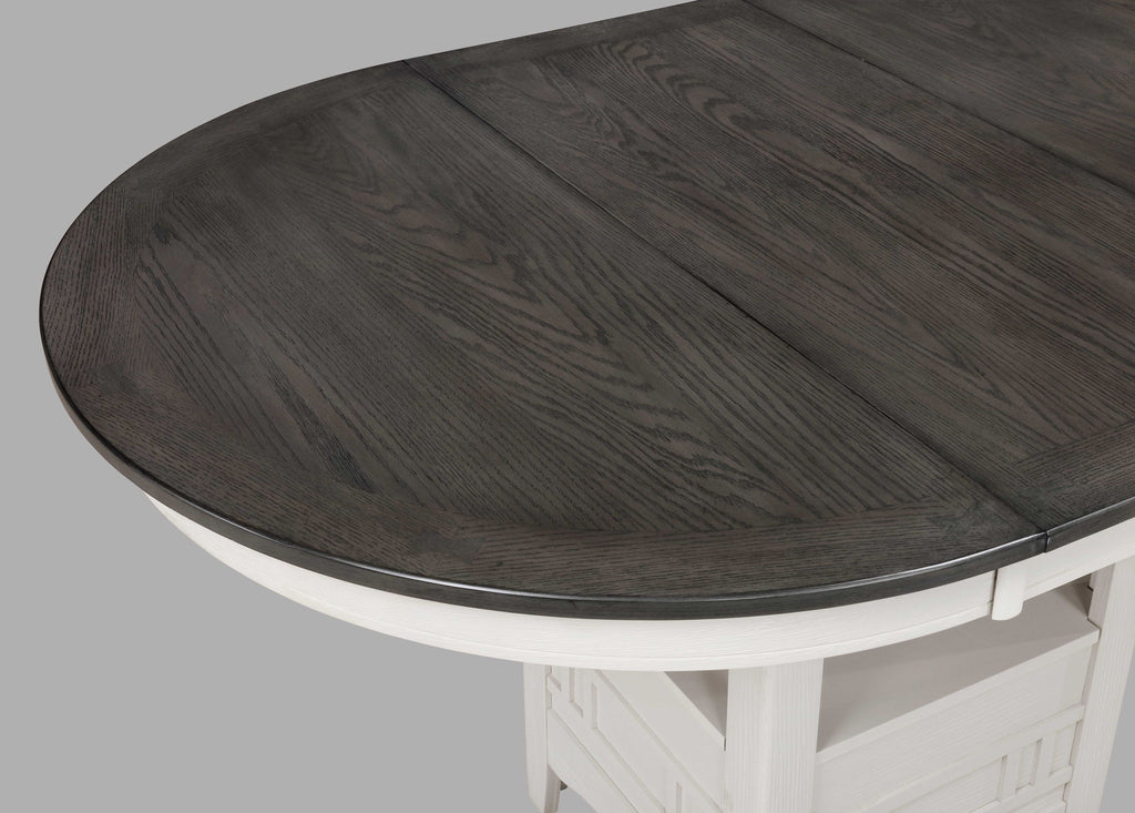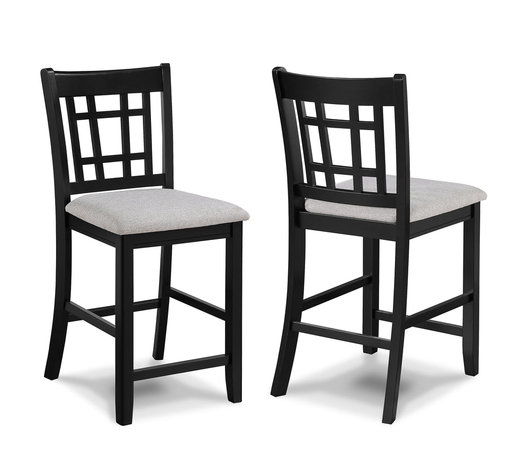 Upgrade your dining space with this sophisticated counter-height dining set, designed to combine modern elegance with everyday functionality. The sleek, round table features a removeable leaf and a open shelf base, offering both style and convenience. Perfect for maximizing space, its elevated design creates an open and inviting atmosphere. The matching counter-height chairs boast a chic lattice-back design and plush upholstered seats, ensuring comfort and support during every meal. Ideal for contemporary or transitional interiors, this set brings a refined yet casual charm to any dining area, making it perfect for intimate gatherings or stylish entertaining.