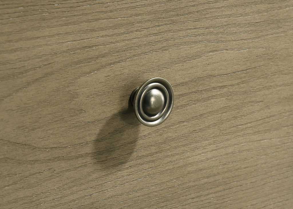 Infuse your bedroom with understated elegance through this two-drawer nightstand in a warm vineyard oak finish. Built from solid rubberwood and engineered wood veneer with embossed oak grain, it delivers timeless style and lasting strength. Antique nickel-finished metal knob offer subtle contrast, while the spacious drawers glide open on heavy-duty metal ball bearing extension slides. Its clean lines and compact size make it a practical and stylish bedside companion for transitional spaces. Key Features: • Nightstand with two drawers for accessible and organized bedside storage • Crafted from rubberwood and engineered wood veneer with oak grain texture • Vineyard oak finish offers a warm, rustic touch to transitional bedrooms • Heavy-duty metal ball bearing extension slides allow drawers to open and close smoothly • Antique nickel metal knobs provide a refined accent against the embossed oak grain veneer • Fully assembled nightstand is ready for placement right out of the box