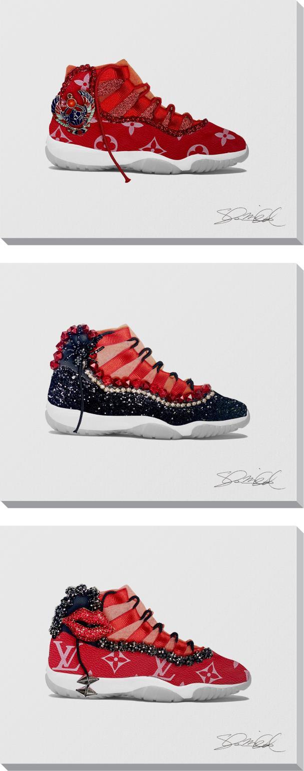 Hd Print On Canvas With Crystals And Glitterr (Set of 3) - Red