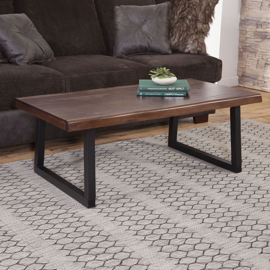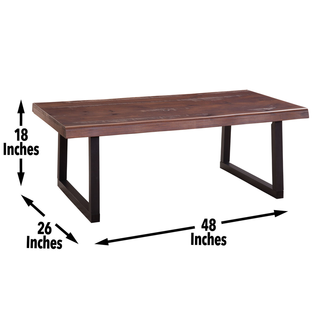 The Jennings Cocktail Table presents a rustic modern style in a two-tone finish that warms up any room. This Cocktail Table can be used alone or paired with the End Table and Bar to complete the room. The deep cherry colored finish contrasts beautifully with the ebony finished bas for a look that is truly transitional contemporary. A rustic live edge gives the table visual interest and shows off the beauty of the solid pine tops.