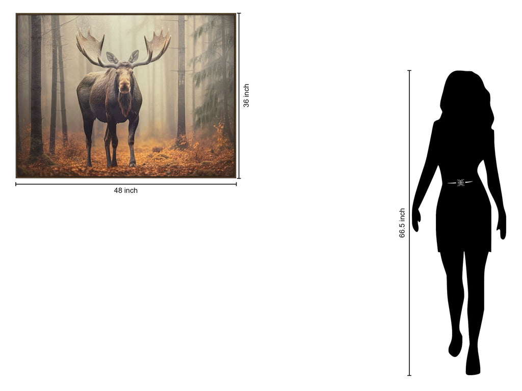 Immerse yourself in the serene beauty of the forest with this hand-embellished acrylic piece. Featuring a majestic moose standing amidst the misty woods, this artwork brings a touch of wilderness into your home. Perfect for nature lovers, it adds a rustic charm to any room.
