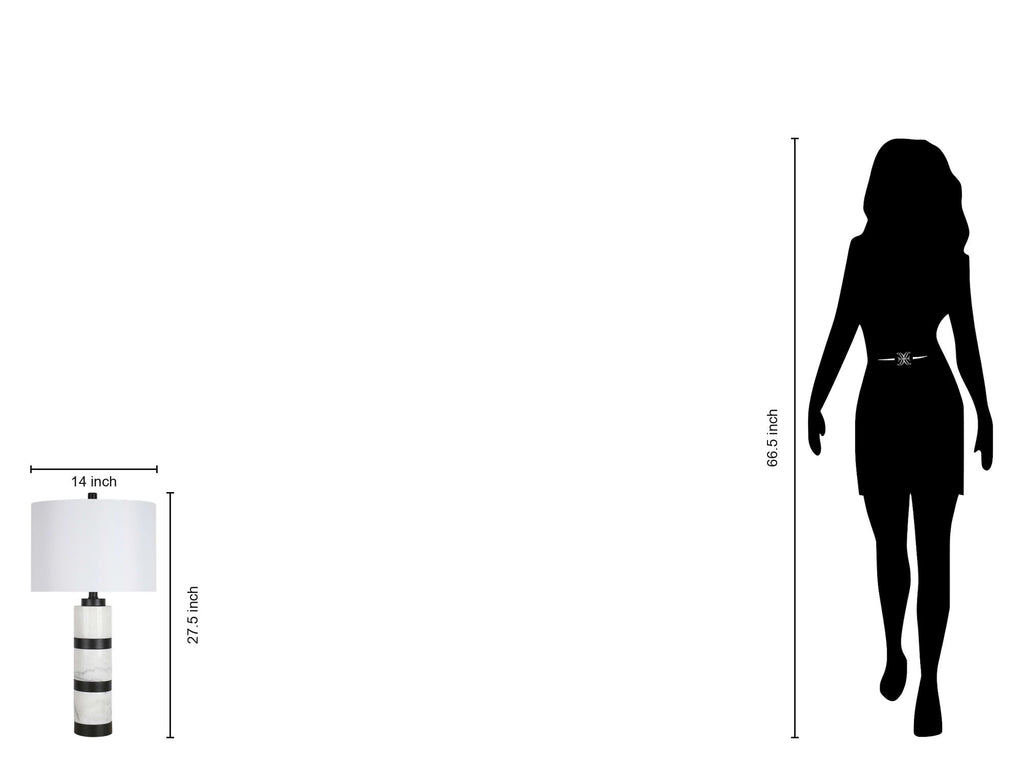 Elevate your space with the Marble Harmony lamp, where classic elegance meets modern design. The smooth, white marble base is accentuated by matte black metal bands, creating a sophisticated contrast. Topped with a crisp white linen drum shade, this lamp casts a warm, inviting glow, perfect for a living room console or bedside table. Its 3-way switch offers versatile lighting options, making it ideal for both ambient and task lighting needs.