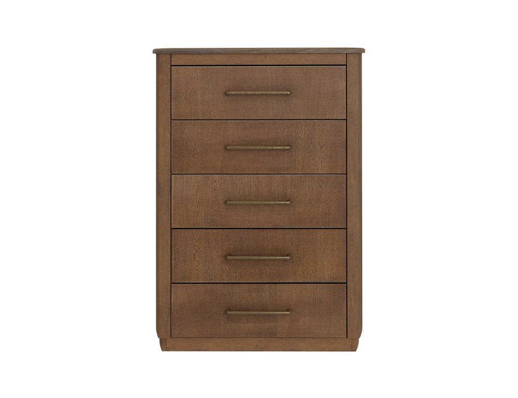 5 Drawer Chest. Introducing The Mezquite Collection: This exquisite collection is meticulously handcrafted from sustainable mango wood. Its light distressed finish gracefully accentuates the natural richness of the wood grain, while its captivating and eclectic design elevates it to a true statement piece that can effortlessly enhance the ambiance of any room in your home.