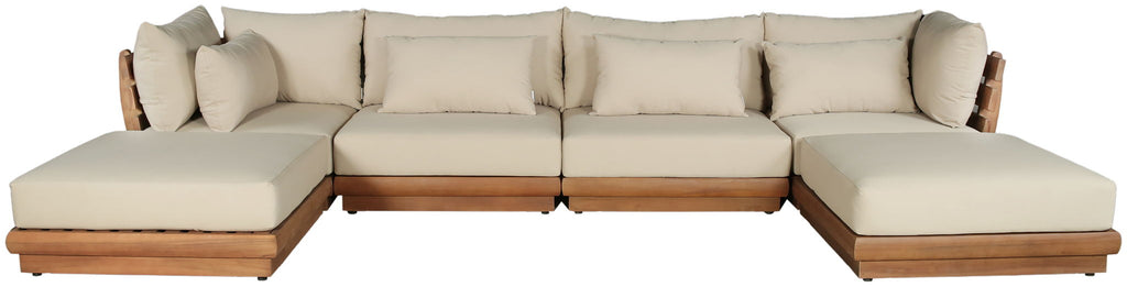 Mirella - 6 Piece Water Resistant Fabric 150" Upholstered Outdoor Patio Modular Sectional - Tan
