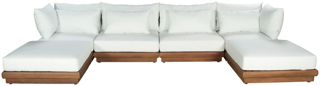 Mirella - 6 Piece Water Resistant Fabric Upholstered Outdoor Patio Modular Sectional - Off-White