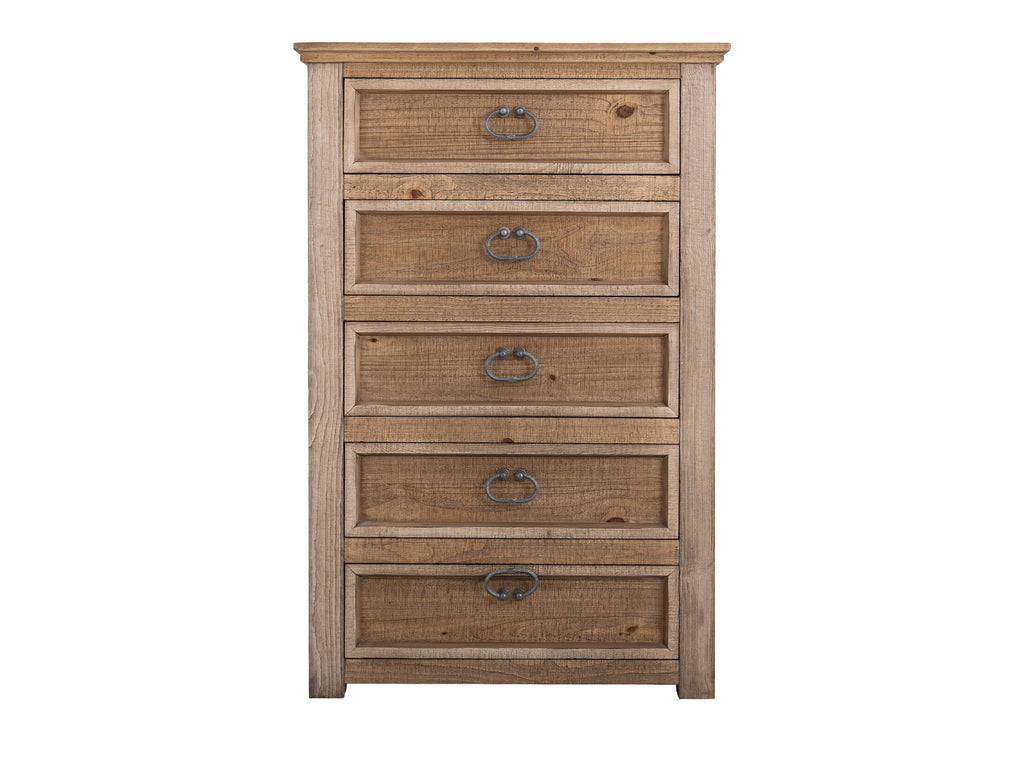 5 Drawer Chest. Indulge in the cozy charm of the Montana Collection, where timeless design meets exceptional craftsmanship. Meticulously crafted from solid pine wood and finished in a warm tone, this collection embodies rustic elegance in every detail.
