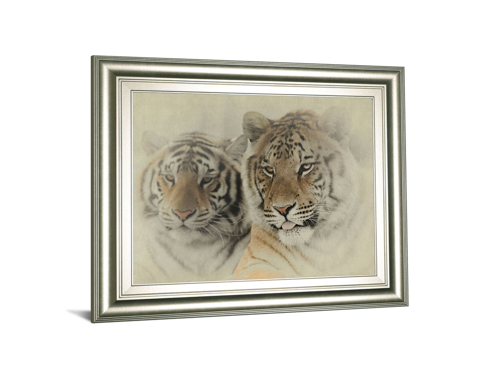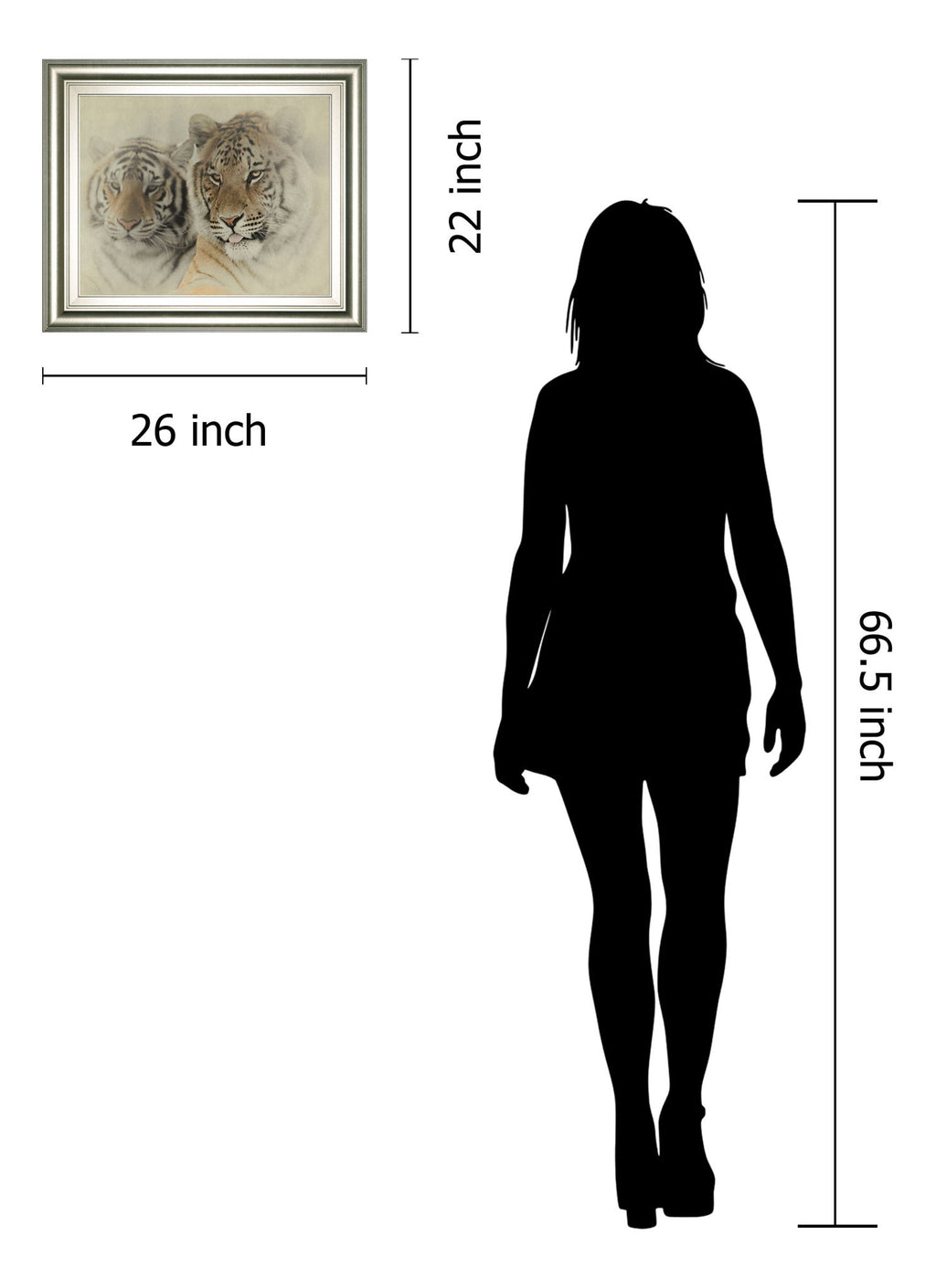 Step into a tranquil world where two majestic tigers emerge from a soft, ethereal haze. This traditional-style graphic art piece captures their serene yet powerful presence with exquisite detail, inviting you to celebrate the grace and mystery of wildlife. Encased in a wide silver frame and protected by crystal-clear real glass, this artwork adds a sophisticated touch to any living room, office, or den. Crafted with premium materials and ready to hang, it brings a timeless elegance and quiet strength to your space, making it a captivating focal point that inspires awe and calm.