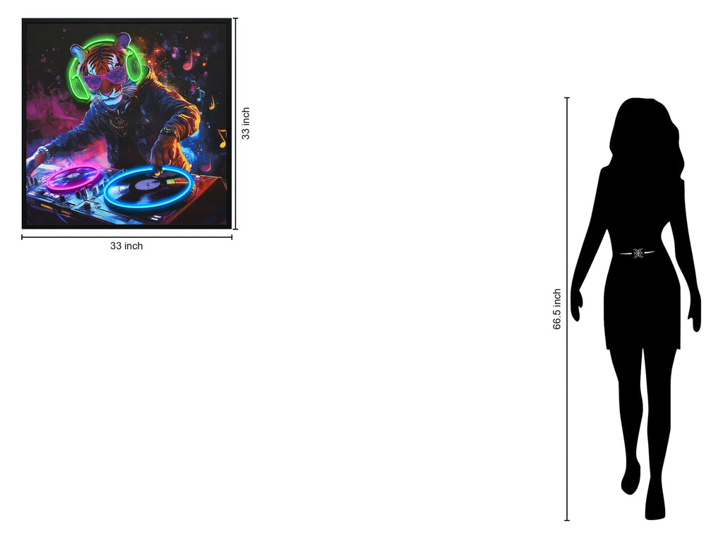 Immerse yourself in the vibrant world of 'Neon Groove,' where a cool tiger DJ spins electrifying beats. This hand-embellished acrylic piece, enhanced with LED lights, brings a dynamic energy to any space. Perfect for music lovers and those looking to add a splash of color and excitement to their decor.