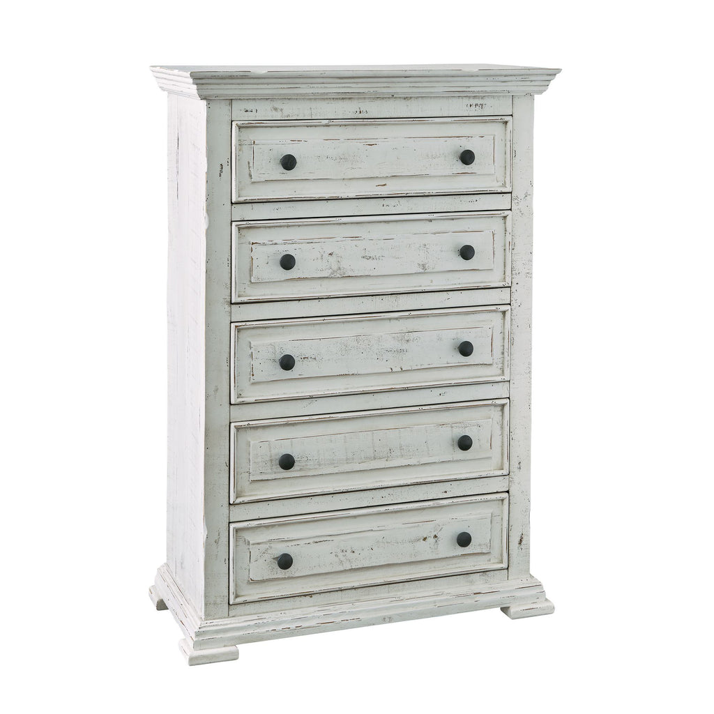 The Olivia bedroom collection, has a rustic appeal with heavy distressing created through rasping and other saw marks, adding to the rugged feel. The western charm of the aged and weathered wood is all enhanced by the handcrafted refined moldings on all case pieces. This unique sophisticated design will warm a traditional home, soften a wood cabin, enhance a rustic lodge, or add a touch of nature to a western ranch.