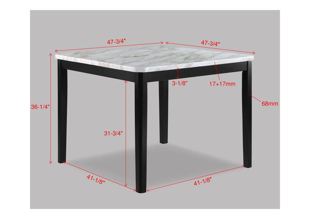 Elevate your dining space with this luxurious and modern counter height dining group, designed to bring elegance and sophistication to every meal. The stunning faux-marble tabletop offers a sleek and polished look, beautifully complemented by the bold frame for a striking contrast. The plush, velvet-upholstered chairs and bench feature chic vertical channel tufting, providing both comfort and contemporary flair. Perfect for hosting dinner parties or enjoying everyday meals, this set seamlessly blends style and functionality. With its refined aesthetic and durable craftsmanship, it’s the perfect addition to any modern home looking for a touch of glamour.