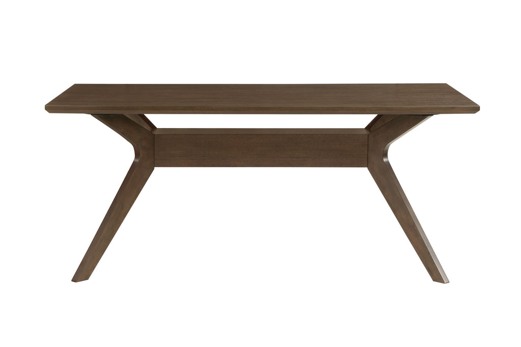 The Quinn 71-inch dining table brings style and sophistication to any dining room. Crafted from top-quality oak veneers and Asian hardwood solids, this dining table is built to last with a sleek and elegant design that is the epitome of mid-century modern at its finest. Built to comfortably seat six people, Quinn is the perfect choice for hosting dinner parties, family gatherings or casual meals with loved ones. The unique curved, angular trestle base adds a touch of modern flair, while the rich chestnut finish exudes warmth and elegance. But Quinn is more than just a dining table – it’s a statement piece that’s sure to impress. Its space age design harkens back to the great Mid-Century designers and is perfect for those who appreciate modern aesthetics, while its durable construction ensures that it can withstand the rigors of everyday use. Upgrade your dining experience with Quinn, the modern 71-inch dining table that perfectly blends style and functionality. Whether you’re enjoying a meal with family or hosting a dinner party with friends, Quinn is the perfect centerpiece for your dining room.