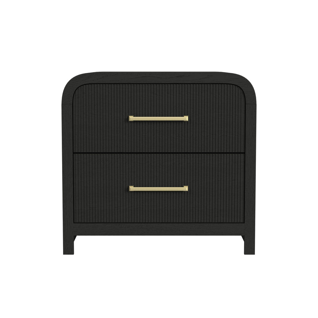 Enhance your bedside with the stylish Ridgemont 2-Drawer Nightstand with USB. Finished in a versatile finish with wood grain detailing, this piece effortlessly adds elegance to your space. Sleek, rounded corners and drawer fronts with decorative fluting create a modern, refined aesthetic, and the spacious drawers are adorned with bold, metal pulls. The nightstand features a convenient USB port, perfect for easy device charging, while the felt-lined top drawer offers added protection for your essentials. With clean, minimalist lines, the Ridgemont 2-Drawer Nightstand with USB combines function and modern design, making it an ideal addition to your bedroom.