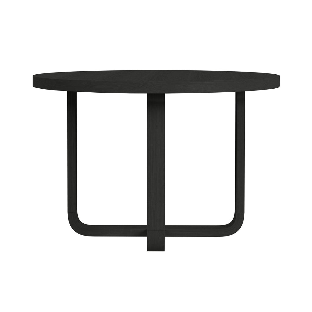 Create an open and inviting dining space with the Ridgemont Round Dining Table. This piece artfully blends geometric and organic shapes by showcasing a gracefully rounded tabletop with gently rounded corners and an artfully sculptural base that creates an inviting, airy feeling with its open nature. The high-quality veneer finished in a sleek, black tone furthers this piece's appeal by simplifying maintenance and enhancing versatility. For a practical and refined addition to the heart of your home, the Ridgemont Round Dining Table satisfies on all fronts.