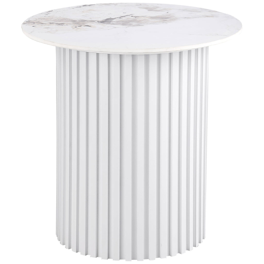 Rowena - Round Sintered Stone End Table - White Faux Marble
