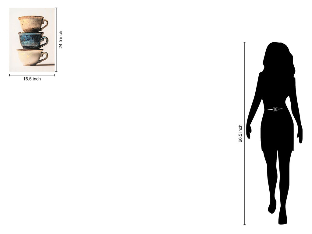 Discover the charm of rustic elegance with this captivating photograph of stacked cups. Each cup features unique textures and subtle glitter accents, creating a harmonious blend of colors. Perfect for adding a touch of warmth and character to your kitchen or dining area.