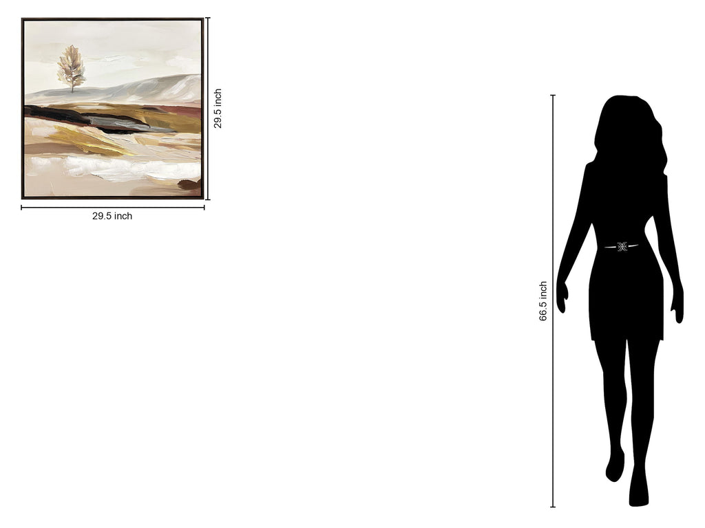 Experience the tranquil beauty of a solitary tree standing amidst a serene landscape. This hand-embellished oil piece captures the essence of calm with its soft, earthy tones and gentle brushstrokes. Perfect for adding a touch of peaceful elegance to any room.
