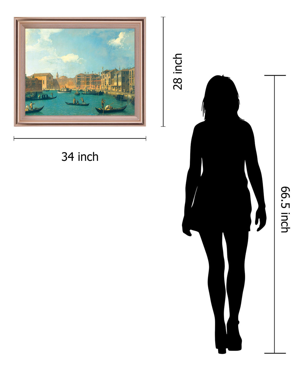 Transport yourself to the heart of Venice with this captivating scene of the Santa Chiara canal. The artwork beautifully captures gondolas gliding across shimmering blue waters under a bright sky, framed in a warm rose gold finish that adds a touch of elegance to any space. Perfect for living rooms or offices, this piece blends historic charm with transitional style, inviting a peaceful, scenic ambiance into your home. Crafted with premium materials and clear glass, it’s ready to hang and instantly transforms your décor with its timeless Italian allure.