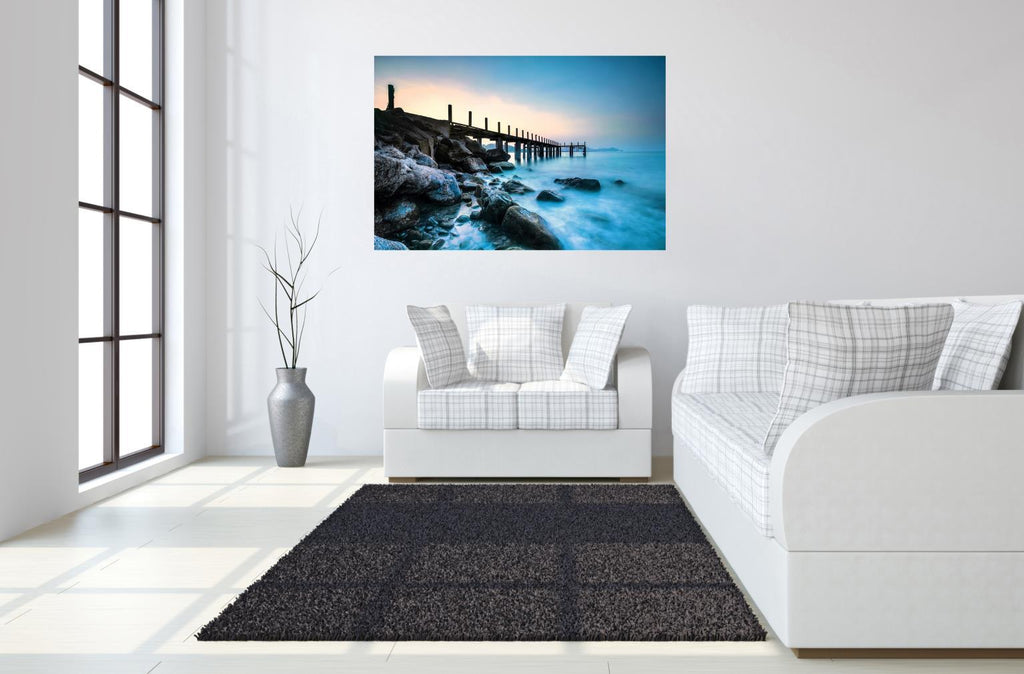 The ghostly waters frame this peir, mystery is the mood. Tempered or toughened glass is a type of safety glass processed by controlled thermal or chemical treatments to increase its strength compared with normal glass. The high-resolution artwork behind hit, coupled with elements of foil will mezmerize your guests. It is incredibly vibrant and alone will add a dramatic affect to your room. We overbox these large 40x60 pieces of art so it will arrive saftely to your home or office. We also have added special hanging hardware, exclusive to Classy Art, to the back to make haning this pice quick and easy.