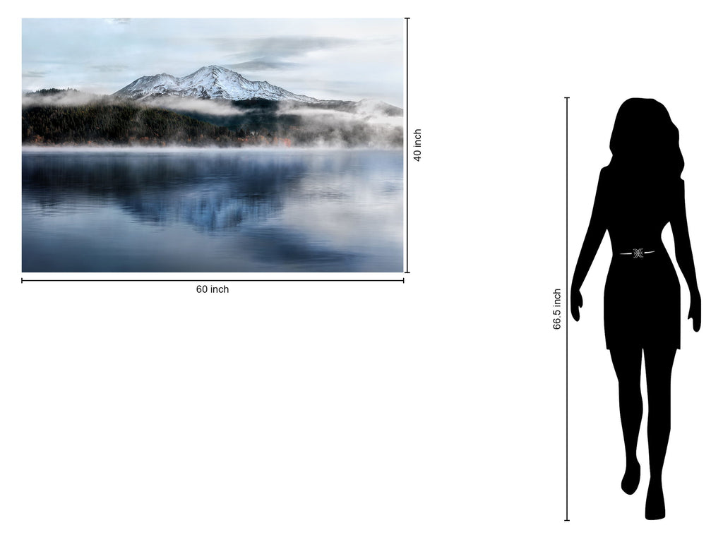 Experience the serene beauty of a misty mountain lake captured in this stunning tempered glass wall art. The photograph showcases snow-capped peaks reflected on tranquil waters, enveloped in soft morning fog that adds depth and mystery. Printed and hand-embellished beneath durable tempered glass, this piece offers a sleek, glossy finish that enhances the vivid blues, greens, and subtle autumn tones. Ready to hang with sawtooth hangers, it brings a peaceful, contemporary touch to living rooms, cabins, or lodges. Each purchase also supports a meaningful cause by providing meals to children in need.