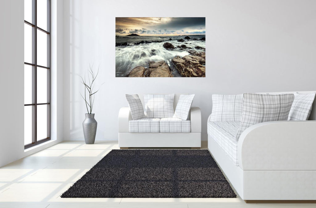 Whether standing in your house or on coastal rocks, look out onto the ocean and enjoy. Tempered or toughened glass is a type of safety glass processed by controlled thermal or chemical treatments to increase its strength compared with normal glass. The high-resolution artwork behind hit, coupled with elements of foil will mezmerize your guests. It is incredibly vibrant and alone will add a dramatic affect to your room. We overbox these large 40x60 pieces of art so it will arrive saftely to your home or office. We also have added special hanging hardware, exclusive to Classy Art, to the back to make haning this pice quick and easy.