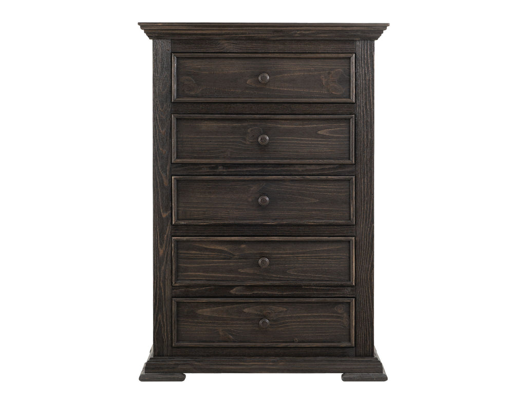 3 Drawer 2 Doors Gentleman's Chest. Drawing inspiration from transitional design, the Terra Gray collection embodies the effortless elegance of its clean, sturdy shapes and the charming rustic grain of solid pine wood. With a tasteful finish, this collection represents a harmonious fusion of modern and traditional elements, making it a timeless addition to your home.