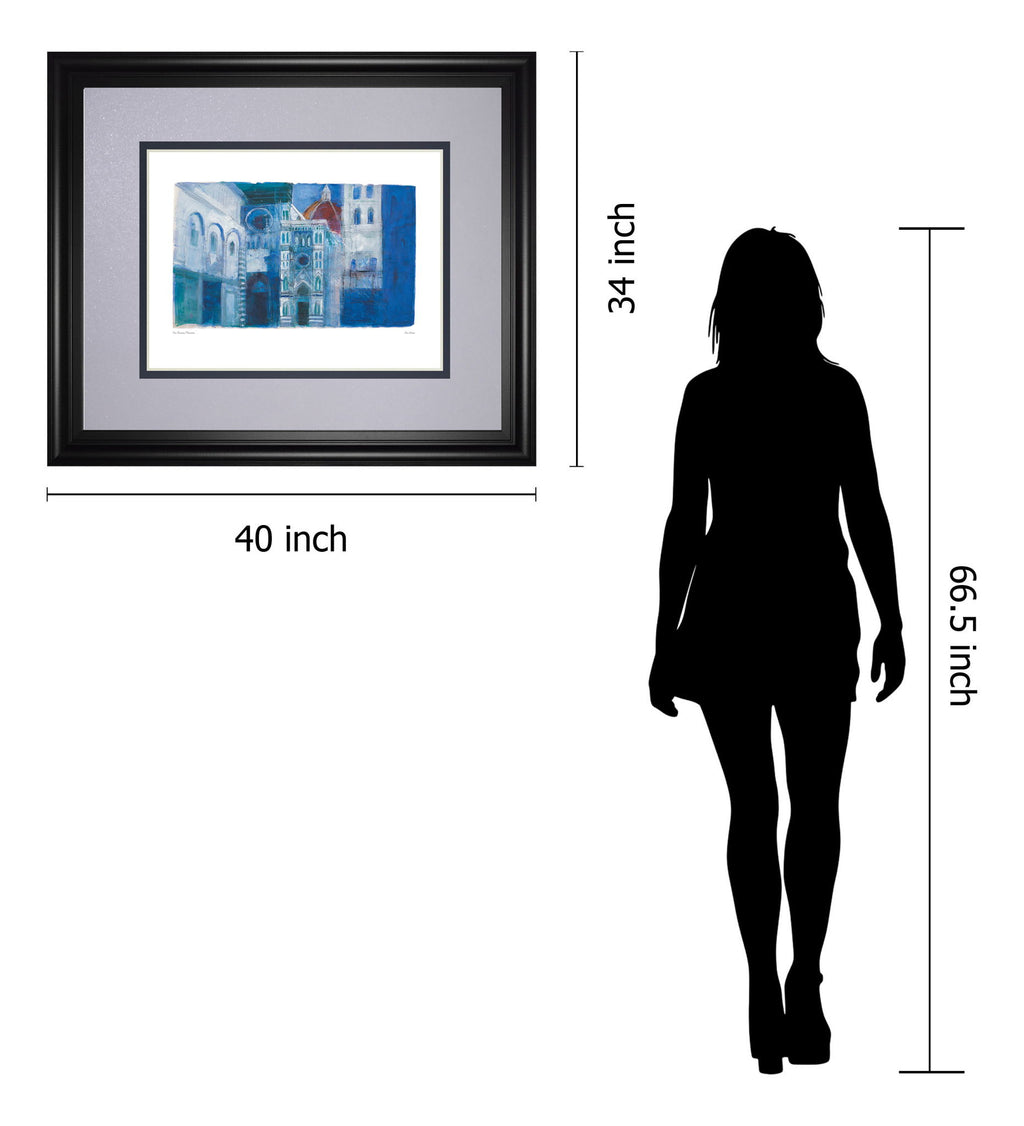 Step into the heart of Florence with this captivating depiction of the Duomo, where architectural grandeur meets artistic expression. Rendered in soothing blues and accented with subtle reds and grays, the piece evokes the serene beauty of this historic landmark through a contemporary lens. The midnight aura frame, complemented by double matting and real glass, elevates the artwork to gallery quality, making it a refined focal point for any living room or office. This framed wall art invites you to experience the charm and timeless elegance of European architecture, bringing a sophisticated ambiance and cultural richness to your space.