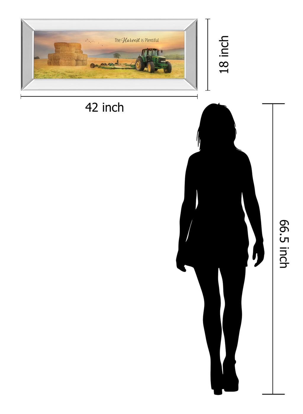 Step into the heart of the countryside with “Harvest Bounty,” a captivating panoramic scene that celebrates the richness of rural life. This framed wall art showcases a vibrant green tractor resting beside towering golden hay bales beneath a soft, glowing sunset sky. The mirrored frame adds a contemporary shimmer, reflecting light to brighten any living room or office space. Crafted with premium real glass protecting a high-quality photographic print, this piece brings warmth, abundance, and a touch of modern elegance to your home. Ready to hang and proudly made in the USA, it’s a perfect blend of tradition and style.