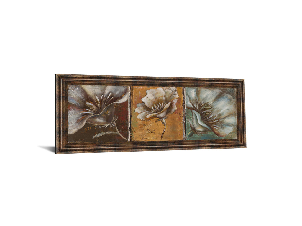 Immerse yourself in the subtle elegance of Three Poppies I, a captivating piece that brings the gentle beauty of nature indoors. This horizontal artwork showcases three delicate poppy blossoms, each set against a rich, earthy background that transitions from deep rust to soft green. The dark chocolate frame enhances the warm tones and adds a refined touch, making it an ideal centerpiece for living rooms, bedrooms, or offices. Crafted with mixed media, the textured details invite closer inspection, while the crystal-clear glass protects the piece and ensures it’s ready to hang. This artful composition effortlessly blends contemporary style with botanical charm, creating a serene atmosphere wherever it is displayed.