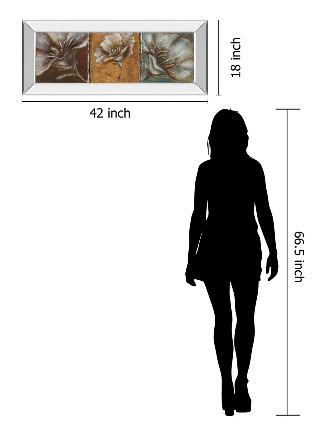 Experience the timeless allure of delicate blossoms with Three Poppies I, a captivating mixed media piece that brings nature’s elegance indoors. This horizontal artwork features three beautifully rendered poppies set against a warm, textured backdrop of earthy browns, teals, and muted beiges. Encased in a sleek 2.5-inch mirrored frame, the piece radiates subtle luxury and depth, enhancing any living room or office space with its refined botanical charm. Protected by premium real glass, every brushstroke and detail remains vivid and crisp, inviting you to appreciate the intricate beauty of floral art. Crafted with expert care and ready to hang, this piece effortlessly elevates your home décor with contemporary sophistication.