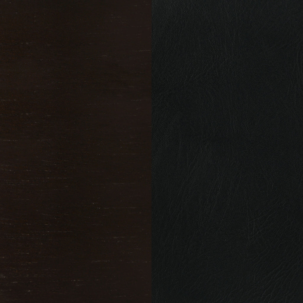 Bring timeless sophistication to your home bar with this swivel bar chair, featuring a cappuccino wood frame and padded black leatherette seat. Its unique open-back design creates an eye-catching focal point, while flared legs and a sturdy round footrest ensure stability. Designed with the comfort of a bar chair and the swivel function often associated with bar stools, this piece blends practicality with elegant design for any bar-height setting._x005F_x000D_ Key Features: • Swivel bar chair crafted for stylish comfort and convenience • Black leatherette seat provides plush cushioning support • Cappuccino wood construction adds warmth and durability • Open-back design creates a distinctive decorative accent • Flared legs and circular footrest ensure balanced stability • Ideal bar chair choice for casual or formal bar-height seating