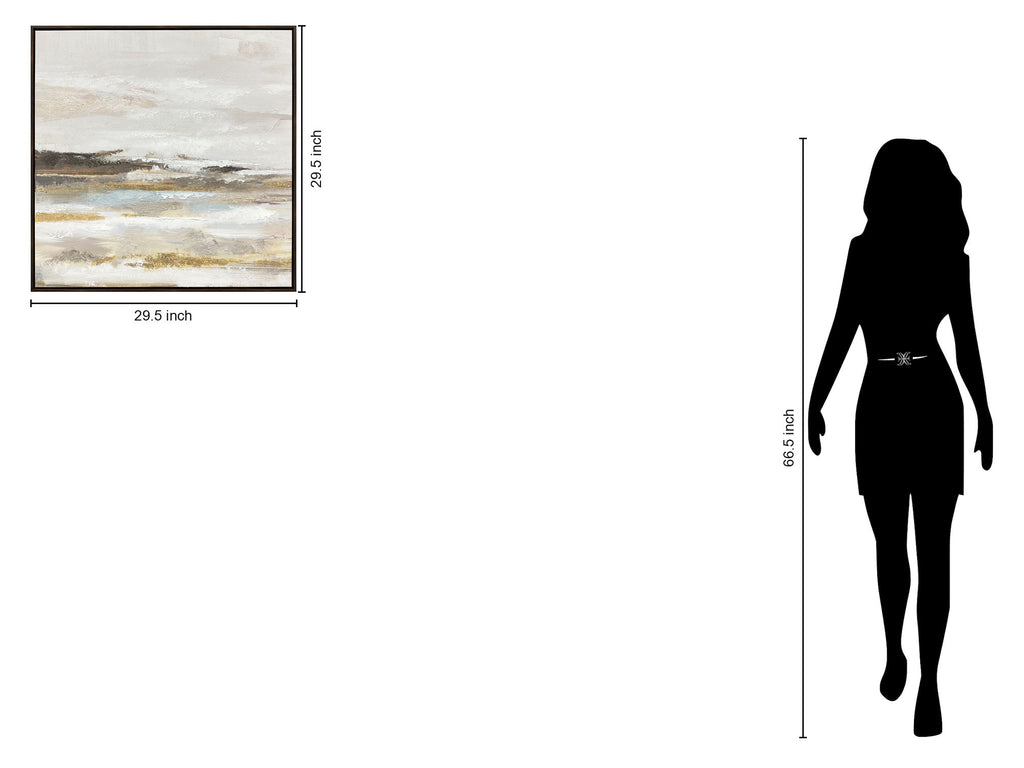 "Tranquil Horizon I" Hand-Embellished Canvas In Frame - Cream / Light Blue / Brown