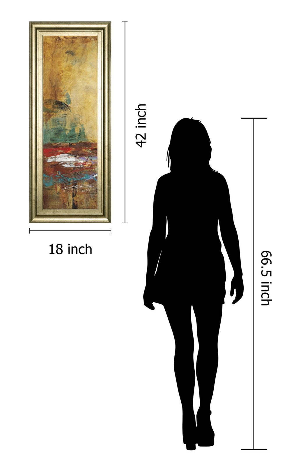 Immerse yourself in the rich textures and vibrant hues of this captivating abstract piece. "Villarreal Santos I" blends warm golds, rusty reds, muted teals, and subtle purples to create a dynamic interplay of color and form that invites contemplation. Encased in an elegant gilded radiance frame, the artwork is protected by real glass, ensuring clarity and durability. Perfectly sized for living rooms, offices, or bedrooms, this framed wall art adds a sophisticated and contemporary touch to any space. Crafted with premium materials and ready to hang, it embodies a seamless fusion of artistic expression and expert craftsmanship.