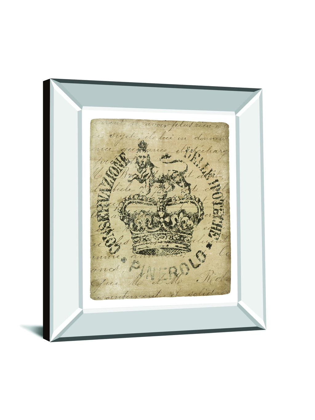Step into a world where history and artistry intertwine with this Vintage Seal Crown wall art. Featuring a regal lion atop an ornate crown, this piece is rendered in an antique script style that evokes a sense of timeless elegance. The muted beige and brown tones, combined with a sleek mirrored frame, create a sophisticated reflective depth that complements any living room, bedroom, or office. Protected by premium real glass, the intricate graphic art maintains its vintage charm while adding a refined statement to your space. Ready to hang and crafted with care, this artwork invites you to celebrate heritage with a modern touch.