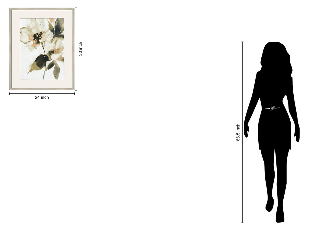 Experience the serene beauty of nature with 'Whispering Petals I' This elegant graphic art piece captures the delicate essence of flowers in soft, muted tones. Perfect for adding a touch of sophistication to any room, its vertical orientation and framed design make it a versatile addition to your home decor.