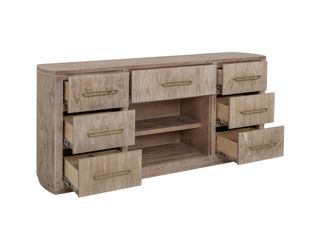 7 Drawer, Console. Our Balam collection is handcrafted from mango and teak wood. This simple yet stunning collection will bring an organic, modern touch to your space. The White Balam consoles highlight the wood's unique grain and offer ample storage for your essentials, adding a stylish look to any room. They are ideal for bedrooms, living rooms, or any area that needs organized storage. The Balam collection not only improves your home but also highlights skilled craftsmanship. Transform your space with these practical and attractive pieces.