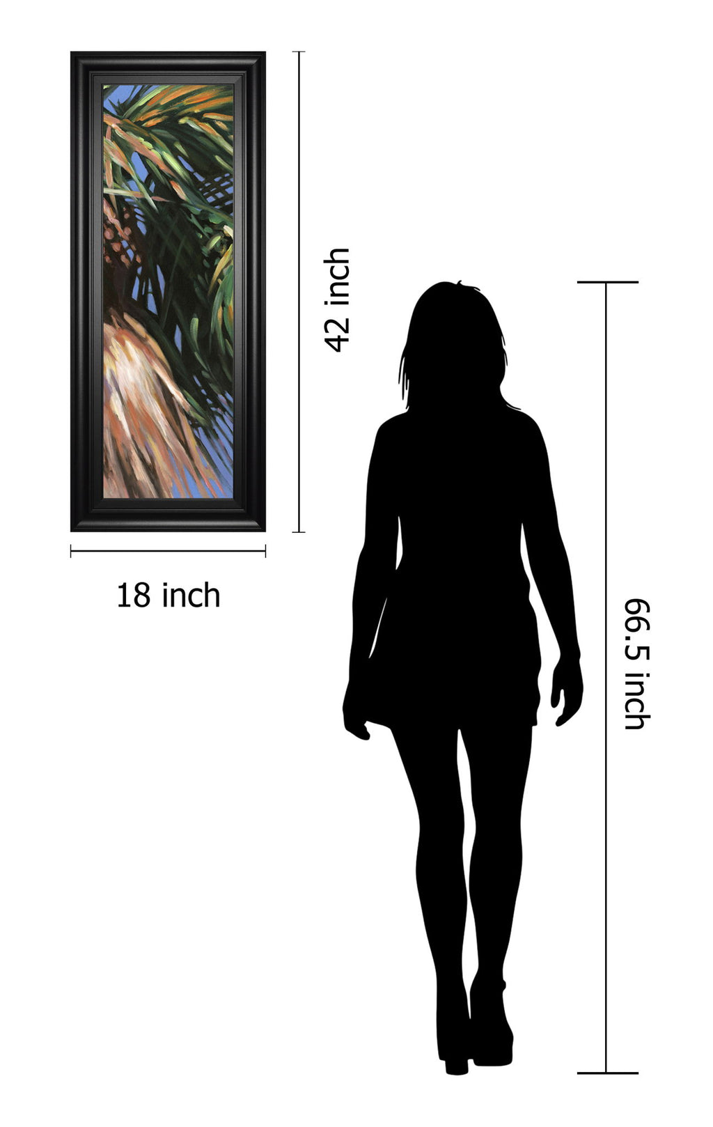 Step into a lush tropical world with "Wild Palm II," a captivating botanical piece that brings the vibrant energy of nature indoors. This vertical artwork showcases the sweeping motion of palm leaves painted in rich greens, blues, and earthy oranges, evoking the feeling of a gentle breeze under a clear sky. Encased in a sleek black frame, it adds a refined yet natural accent to any living room, bedroom, or office, effortlessly blending contemporary style with organic beauty. Crafted with care and ready to hang, this framed art invites you to experience the calming allure of the tropics every day.