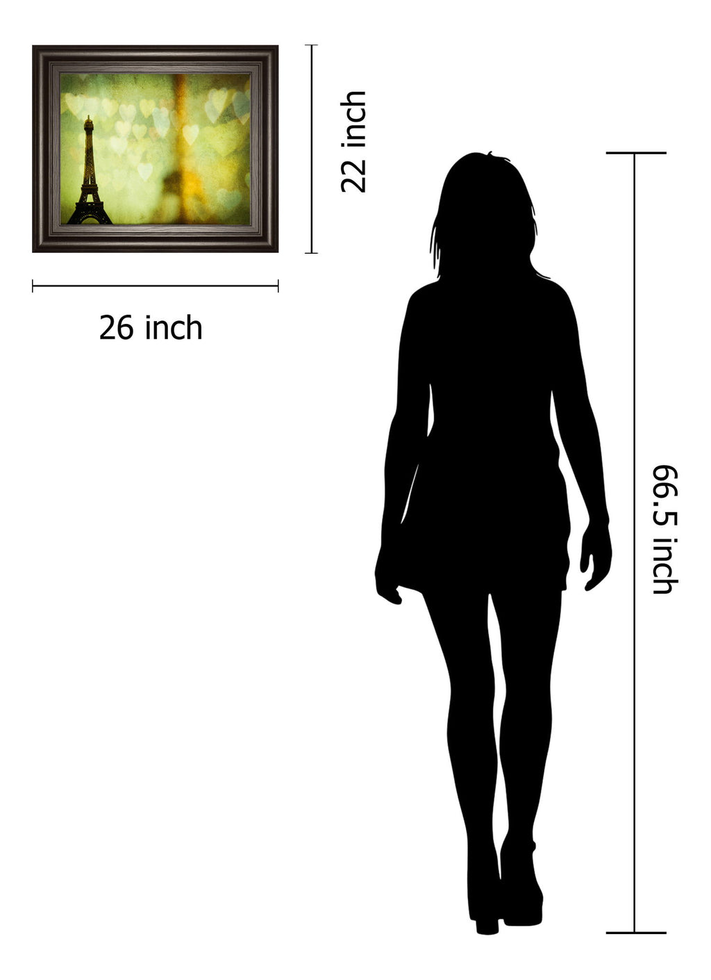 Step into a dreamy Parisian moment with this captivating piece that blends the iconic silhouette of the Eiffel Tower with a soft, glowing backdrop of heart shapes. The rich dark chocolate frame enhances the warm green and yellow tones, creating a sophisticated yet inviting atmosphere perfect for any living room or office. Crafted with care, this artwork evokes timeless romance and elegance, making it a beautiful statement of love and charm in your space.