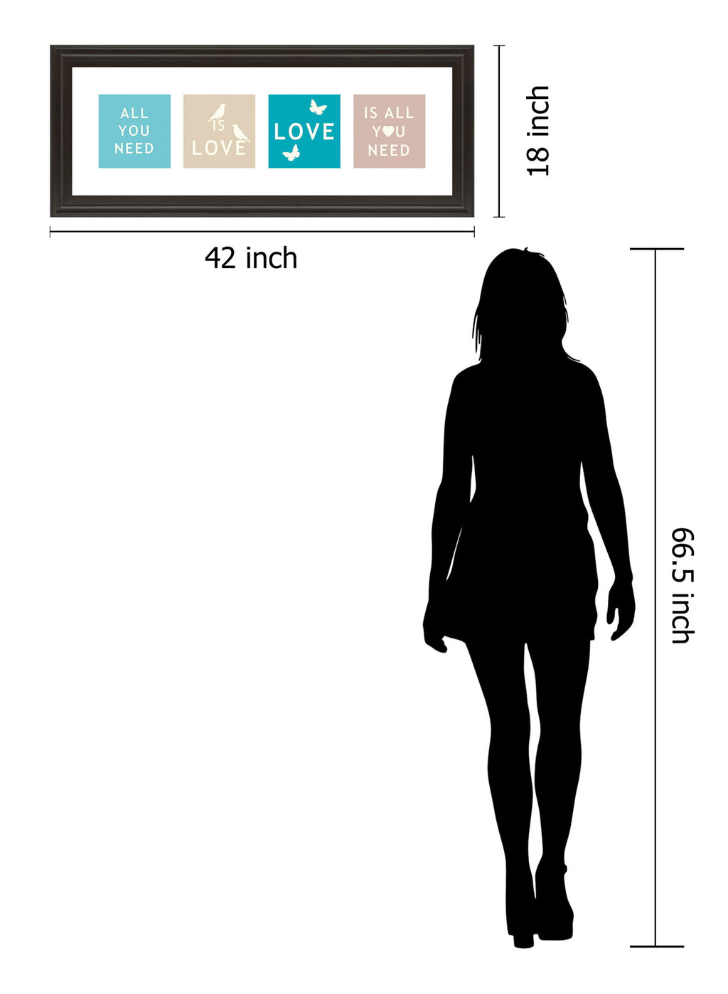 Embrace the uplifting message of love and kindness with this beautifully framed wall art. Featuring four pastel-colored blocks adorned with gentle typography and charming silhouettes of birds and butterflies, this piece radiates warmth and positivity. The dark chocolate frame adds a touch of sophistication, making it an ideal accent for your living room, bedroom, or office. Crafted with premium materials and protected by crystal-clear glass, it arrives ready to hang and inspire, bringing a serene and motivational atmosphere to any space.