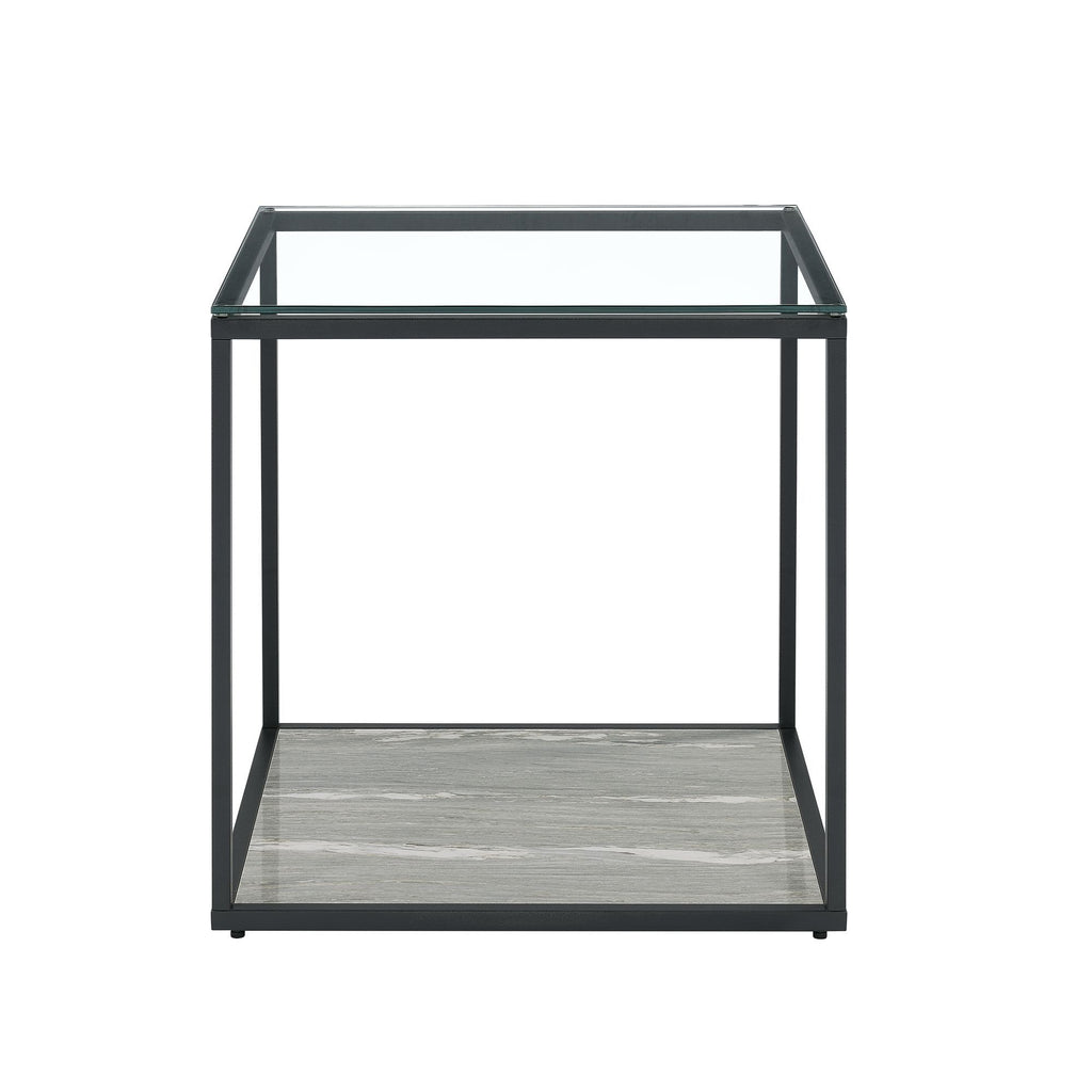 The Yasmin Table offers a stylish and contemporary addition to any living space. With a sleek tempered glass top and a convenient bottom shelf, this table provide ample surface area for displaying decor or keeping your essentials within easy reach. The sturdy metal legs not only ensure stability but also lend an industrial charm to the design. It will be perfect for elevating the look of your home while providing functionality and versatility. Easy to assemble, the Yasmin Table is a must-have for those seeking modern elegance and practicality.