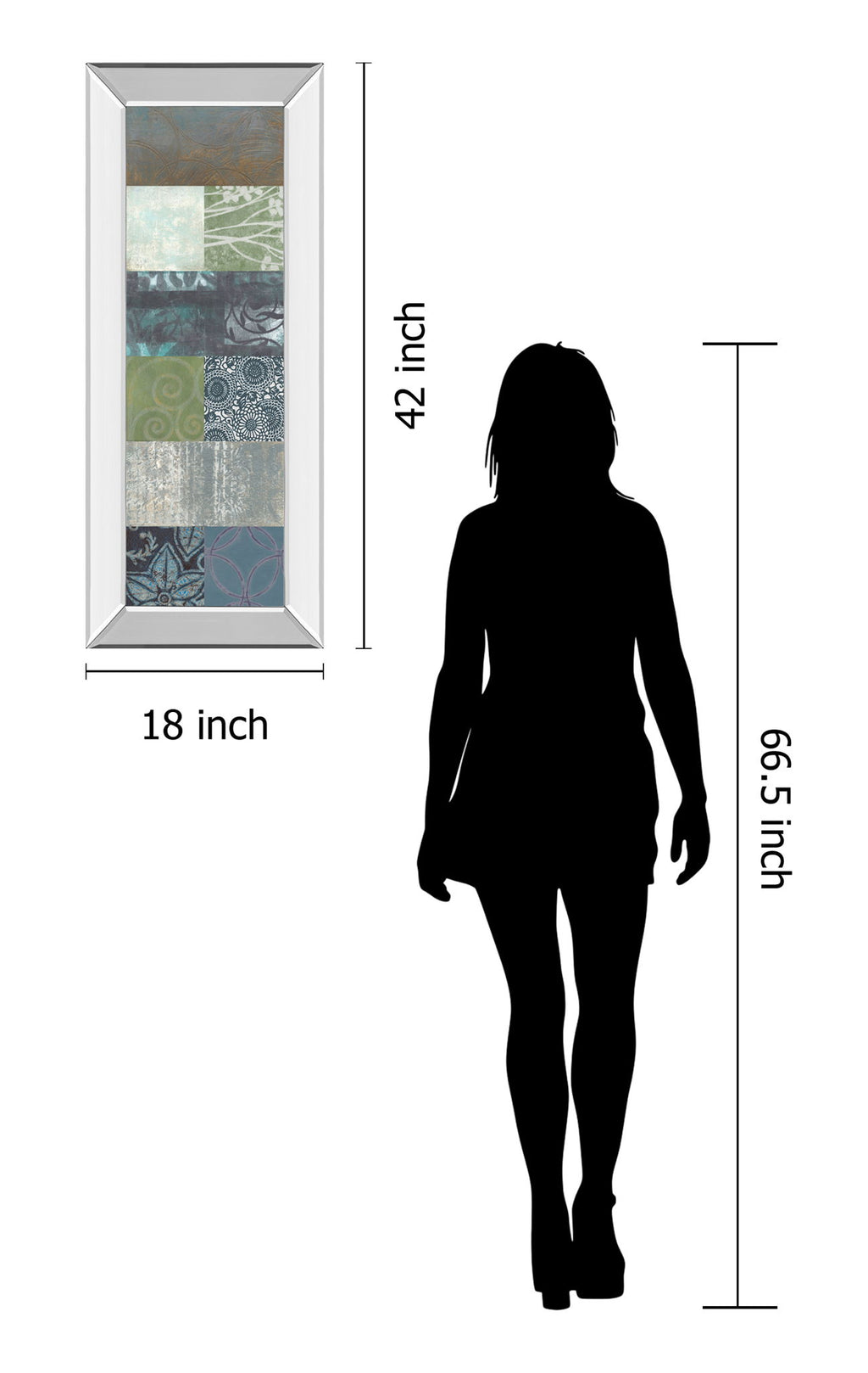 Experience the serene beauty of nature with this elegant framed wall art, featuring a sophisticated patchwork of botanical-inspired patterns in muted greens, blues, and grays. Encased in a sleek 2.5-inch mirrored frame, the artwork reflects light and adds a modern touch to any living room, bedroom, or office. Crafted with premium real glass for lasting protection, this vertical piece invites tranquility and refined style into your space, ready to hang with effortless charm and quality.